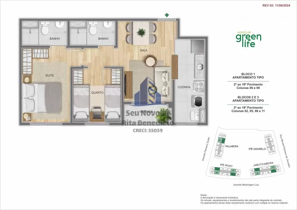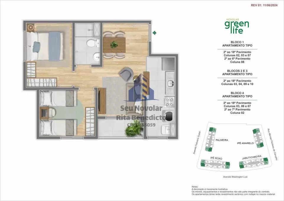 Com projetos de apartamentos de 2 quartos, de 45,45m2 a 80,30m2